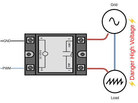 A relay is able to let current pass to the load or not. By sending small part of current (blinking), it is possibile to divert a well defined amount of energy to the load.